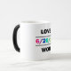The black cat in the window mug is magical. I didn’t know what a morphing mug was when I got it. When hot the cat appears and cold it looks like a plain black mug. .