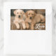 Love is in the air! This cute sticker features a pair of yellow Labrador Retriever puppy dogs resting on a red brick fireplace hearth with the word love printed in a fancy white script font.