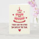 This greeting card centers on a three-tier cake that represents steady, lasting affection. The cake is decorated with soft cream frosting, gentle pink accents, and warm red details, creating a calm and romantic mood. Simple scalloped icing adds texture without clutter, and a single lit candle suggests care and intention. Small heart shapes appear lightly around the cake, reinforcing warmth and connection. The layout is balanced and uncluttered, with smooth lines and soft color transitions. Overall, the design feels sincere, comforting, and thoughtful—well suited for expressing Valentine’s Day love