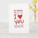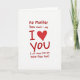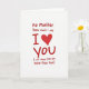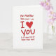 This greeting card keeps things simple and all about love. The background is plain white, so your eyes go straight to the message in the middle. Across the center it says “I ❤️ YOU” in large, rounded red letters, with a red heart standing in for the word “love.” The heart has a little shading, which gives it a soft, slightly 3D look. Above that, in smaller, thinner writing, it reads “no matter how much i say.” Below the main line, there’s a smaller note in parentheses that says “(i will always love you more than that),” adding an extra sweet promise ❤️. It feels like a clear, honest way to tell someone they matter, perfect for a partner or someone close 💘😘.