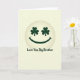 This card features a simple smiling face centered on a creamy, softly shaded circle set against a pale off-white background. Two deep emerald shamrocks sit where the eyes would be, giving the face a St. Patrick’s Day touch ☘️. A curved smile in the same rich green stretches gently across the lower half of the circle, like it’s beaming at someone close. Just below the face, the words “Love You Big Brother” appear in matching green, placed neatly under the smiling to feel like it’s being said directly to him 💚. The tight palette of warm cream and dark green keeps the scene calm and focused, with the shamrock eyes adding a sweet, affectionate wink. The smooth shading around the circle adds a light sense of depth, while the background stays airy and uncluttered. The green text sits centered beneath the face, and the shamrock eyes are evenly spaced above the curved smile.