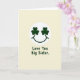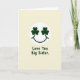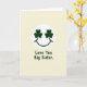 This card features a soft cream background with a white circular badge near the upper center, like a spotlight on a simple smiling face. Inside the circle, two deep emerald shamrocks sit where the eyes would be, and a dark green curved line forms a gentle smile, giving the face a friendly, affectionate look ☘️. The shamrock “eyes” feel like a sweet nod to St. Patrick’s Day, as if the face is looking at someone it cares about with easy warmth 💚. Centered below the circle, the words “Love You Big Sister.” appear in dark green lettering that matches the smile and the shamrocks. The text sits on its own with plenty of open space around it, making the message easy to notice without crowding the design. The limited palette of cream, white, and rich green keeps everything calm and focused, with the shamrocks providing the strongest color contrast. The white circle remains crisp against the cream field, and the green details stay neatly contained within the badge and the single line of text beneath it. The two shamrocks are evenly spaced inside the circle, with the curved smile centered below them.