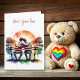 A watercolor ai illustration of two men sitting on a bench together looking out at a sunset. A card just to say I love you.