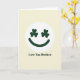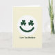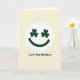 This greeting card features a soft, creamy yellow background with a crisp white circle centered like a badge. Inside the circle, a friendly smiling face looks back, with two dark green shamrocks for eyes that feel like a warm wink between close family or friends ☘️. A curved deep-emerald smile sits beneath them, giving the face a gentle, welcoming expression. The simple contrast between the white circle and the muted yellow field keeps the focus on the green details without crowding the scene. Below the emblem, the words “Love You Brother.” appear centered in a classic serif font. The text is also dark green, matching the shamrock eyes and smile for a tied-together look 💚. The composition stays open and uncluttered, with the circle above and the line of text beneath it on the yellow canvas.