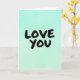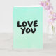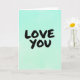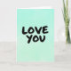 This card features the words “LOVE YOU” large in the center, written in thick black brush-style lettering with uneven edges that look like real ink strokes. The letters feel direct and honest, like something you’d write when you really mean it. Behind the text is a soft aqua-green background that fades from a slightly deeper green at the top to a pale mint near the bottom. If you look closely, there’s a faint marbled, watercolor-like texture that keeps the background from feeling flat. The simple layout makes the message the focus, so it’s easy to give when you want your feelings to be clear without saying too much. It works for a partner or a close friend, because the words are straightforward and comforting ❤️. Share it to pass along a little Valentine’s Day love and care 🥰.