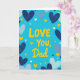 This card has a bright blue background that feels calm and cheerful at the same time. In the center, it says “LOVE YOU, Dad” in chunky, hand-drawn yellow letters that look friendly and sincere. Around the words, there are lots of hearts in different shades of blue, from deep navy to pale sky blue. You’ll also spot a few small white hearts and tiny yellow hearts mixed in, tying back to the yellow lettering. The hearts vary in size, and some of the darker ones have a slightly textured look, which adds depth without being busy. It’s a simple design, but it lands with real warmth and makes “Dad” feel clearly included and appreciated. Giving it says you care in an easy, honest way, whether it’s from a kid or an adult who still wants to say it out loud ❤️. Hope it helps you share Valentine’s Day feelings with someone you love 🥰.
