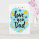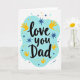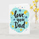 This card shows a light cyan, cloud-like shape in the middle of a white background, like a soft splash of color. In the center, the words “love you Dad” are written in black, flowing hand-lettering that feels like it was written from the heart. Around the blue shape, there are sunny yellow dots, little starburst shapes, and a few darker navy speckles that add energy without feeling busy. You can also spot several golden-yellow handprints, like a kid pressed their painty palm right onto the card. The mix of bright yellow and deep navy against the pale blue makes the message stand out and feel extra warm. It’s a sweet choice for sharing love with a dad because it feels honest, simple, and full of care ❤️. Send it to say “I love you” in a way that feels close and real, and to share Valentine’s Day sentiments 🥰.