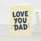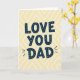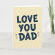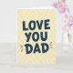 This card shows the words “LOVE YOU DAD” centered on a pale yellow background. The letters are dark blue and all caps, with white dashed lines inside them that look like little road markings. Behind the words, there’s a light cream zig-zag pattern that feels like a cozy quilt or a gentle maze. Small radiating lines sit around the word “DAD,” like tiny beams that draw your eye and add extra emphasis. The simple colors and the road-like details make it feel like a quiet nod to shared time, guidance, and the path you’ve walked together. It’s a meaningful choice when you want to say thank you and “I love you” in a way that feels steady and sincere 🥰❤️. Share it to pass along warm Valentine’s Day feelings to someone you care about.