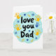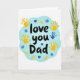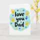 This card shows a white background with a soft, sky-blue shape in the middle, like a gentle cloud or ink blot. Inside that blue shape, the words “love you Dad” are written in black, with a loose hand-drawn look, placed right at the center where your eyes land first. Around the message are several kid-like handprints in golden-yellow, plus one handprint in a medium blue that stands out a bit. Small details are scattered around too, including tiny white stars, dark blue flower shapes, and a few golden-yellow leaf sprigs. The slightly uneven edges and simple marks make it feel like it came from a child who really wanted to say something important. It’s a sweet way to show care and gratitude, whether it’s from a kid or from an adult remembering those early days. Add it to a gift or give it on its own to say “I love you” in a straightforward, heartfelt way 🥰❤️.