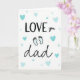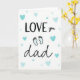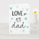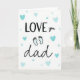 This card features the words “LOVE you dad” centered on a white background, and it feels like a simple, loving note. “LOVE” appears in large teal capital letters, while “you dad” is written in a thinner, flowing black letter style right beside it. Between the words, there are two small baby footprints outlined softly and filled with teal, like a little reminder of a child’s presence. Around the message, several small teal hearts are scattered in different sizes, giving the front a gentle, caring look. The white space keeps everything easy to read and puts the focus on the message and the tiny details. It feels meaningful because it connects fatherly love with the tenderness of a baby or young child saying thank you and I love you. It’s a sweet choice for a dad who would appreciate a quiet, affectionate reminder of family 🥰❤️. Hope it helps you share Valentine’s Day sentiments in a simple, caring way.