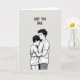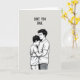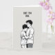 This card shows a father holding his young son in a close, calming hug against a warm gray background. The dad is taller and stands upright, arms wrapped around the boy in a protective way. The boy is tucked into his chest with his eyes closed, looking safe and fully at ease. The father looks down gently, with a quiet, caring expression that says a lot without needing extra details. The drawing uses black outlines with soft gray shading, keeping the focus on their faces, arms, and the closeness between them. Above the figures, the words “LOVE YOU DAD.” appear in all caps, in simple black lettering, placed near the top like a clear message. It feels meaningful to give because it says “I care about you” in a straightforward way that fits both romance and close friendship, not just family 🥰❤️. Hope it helps you share Valentine’s Day sentiments with someone you love.