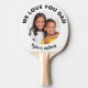 Celebrate the world's greatest dad with this fun custom photo white and black ping pong paddle. Easily personalize with a favorite photograph (crop if necessary to a square with the subjects in the middle before uploading). You can personalize "We Love You Dad" to something in similar length such as "Best Dad Ever" or "World's Greatest Dad," and whether he is called dad, daddy, papa, pops, etc. On the bottom you can add children's names or other text.