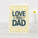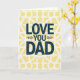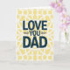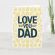 This card features the message “LOVE YOU DAD” right in the center, set against a soft pastel yellow background. The words “LOVE” and “DAD” are in dark blue, all caps, with thick letters that look like tiny roads. Each letter has white dashed lines down the middle and small white dots, like lane markings, which makes it feel like a nod to guidance and being there through life’s turns. The word “YOU” sits between them in a slightly lighter blue, and it’s framed by two dark blue swirls that curl outward like simple flourishes. Behind the text, there’s a faint geometric pattern in a lighter yellow, adding texture without pulling attention away. The overall look is calm and affectionate, and it’s a meaningful way to say thank you and “I love you” to a dad who’s been steady and supportive. Share it with love 🥰❤️ and pass along your Valentine’s Day feelings.