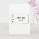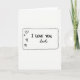 This card shows a white background with a simple black dashed rectangle drawn in slightly uneven lines, like a quick note made with care. Inside the frame, the message reads “I LOVE YOU, dad.” “I LOVE YOU” appears in all-cap letters that look thick and hand-drawn, centered in the middle of the card. Just below it, “dad” is written smaller in a looser, flowing handwritten style, also in black. Along the left side inside the border, four small hearts are sketched in black, stacked upward with little differences in size and shape. The whole design feels quiet and honest, making it easy to give when you want your love to be clear without saying too much 🥰. It’s a meaningful way to remind a dad that he’s appreciated, whether it’s from a child or an adult who still wants to say it simply ❤️.