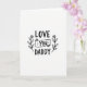 This greeting card shows a white background with black, hand-drawn lettering that reads “LOVE YOU DADDY.” “LOVE” sits at the top in thick, simple letters, and “DADDY” is placed at the bottom to balance it out. In the middle, “YOU” appears inside a small banner shape, with short lines radiating outward to draw your eye to it. On the left and right sides, two matching leafy branches curve upward, each ending in a small bud that helps frame the words. The overall look is calm and focused, so the message feels direct and easy to understand. It feels meaningful to give because it says what you might not always say out loud, in a warm and straightforward way ❤️. It’s a sweet choice for a dad who means a lot to you, whether from a kid or an adult child 🥰, and it’s a friendly way to share Valentine’s Day sentiments.