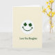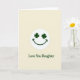 This greeting card features a creamy beige background with a crisp white circle set in the upper-middle area, like a simple badge on the page. Inside the circle is a friendly smiling face, with two dark green four-leaf clovers for eyes that feel like a lucky wink ☘️. A matching dark green curved line forms the smile, giving the face a gentle, affectionate look that reads like a warm bond between close family or friends. In the lower third, the message “Love You Daughter” is centered in thick dark green lettering that stands out clearly against the soft backdrop 💚. The spacing leaves plenty of open room around the design, keeping the focus on the face above and the words below. The white circle’s edge looks smooth and even, and the clover shapes are neat with four rounded leaves each. The overall layout is calm and balanced, with the green details and centered text aligned beneath the circular emblem.