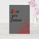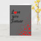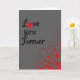 This greeting card features the words “Love you Forever” in black flowing cursive-style lettering across a soft grey background. The “o” in “Love” is replaced by a bright red heart, which draws your eye right away ❤️. In the lower right area, a stream of small hearts rises upward, mixing solid red hearts with red outline hearts that use short dashed lines. The hearts vary in size, so it feels like they’re drifting and spreading across the card. With only grey, black, and red, the message feels focused and easy to read. It’s a simple way to say you care deeply, whether it’s for a partner or someone you’ve loved for a long time 🥰. The design feels steady and reassuring, like a promise you want the other person to keep. Hope it helps you share Valentine’s Day sentiments in a kind, heartfelt way.