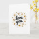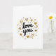 This card shows the words “love you” in black, flowing letters placed right in the center. Around the text is a loose circle of metallic gold shapes that look like hearts, little stars, curling lines, and tiny dots. Some hearts are filled in while others are outlined, and the mix makes the design feel lively without being too busy. The gold details have a slightly uneven, textured look, like they were brushed on by hand, which adds a cozy, real feel. The bright white background keeps everything easy to see and makes the gold shine softly. It comes across as sweet and straightforward, perfect for telling someone you care without needing a long note 🥰. Whether it’s for a partner or a close friend, the simple “love you” says a lot, and it’s easy to share Valentine’s Day ❤️.