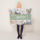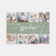 Give Grandma a gift she'll cherish. This photo collage blanket features eight of her favorite square photos of the grandkids, along with the message "Love You Grandma." The word "grandma" appears in elegant white handwriting script with flourishes at the beginning and end on a sage green background. Add the names of up to four grandchildren. An ideal gift for holidays, birthdays or grandparents' day.