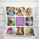 Create a special personalized pillow keepsake for the grandma aunt ever. This design features clean modern lines with eight rounded squares framing family photos, her name (customize to Granny, Gran, Oma, Nana, Abuela, etc.) and her grandchildren's names on a purple rounded square.