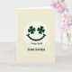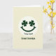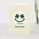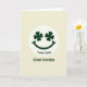 This greeting card features a friendly smiling face centered inside a bright white circle, set against a creamy ivory background. Two deep emerald four-leaf shamrocks replace the eyes, giving the face a sweet, lucky look that feels like a gentle wink between loved ones ☘️. A matching green curved smile sits below, simple and welcoming, like a grin meant just for someone special. Beneath the circle, the words “Love You” appear in a softer, slightly slanted green line of text, placed neatly above the name. “Great Grandpa” is set below in a stronger, steadier green style, making the relationship clear at a glance 💚. The spacing keeps everything airy and easy to read, with the emblem taking the top focus and the message anchored underneath. The green details stand out crisply against the ivory field, keeping the design calm and uncluttered. The final look is a white circular badge with shamrock eyes and a green smile floating above two centered lines of green text.