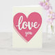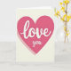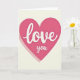 This card features a large fuchsia heart that nearly fills the front, set on a soft creamy off-white background that keeps the focus on the shape ❤️. Centered inside the heart, the words “love you” sit prominently in smooth white lettering, easy to read against the pink. The letters curve gently as if written by a steady hand, giving the message a close, intimate feel 🥰. A faint drop shadow under the heart makes it look slightly raised from the surface, adding depth without adding clutter. The white text also appears a touch thicker, so it stands out like a small layer on top of the heart. With no extra objects around it, the simple layout feels like two people leaning in close, letting a few words carry the moment. The heart’s edges are rounded and even, and the soft shadow falls just below and slightly to one side of the bright shape.