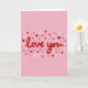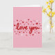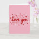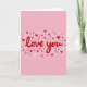 This card shows a pastel pink background with the words “love you” right in the center. The text is in a smooth, flowing style and colored deep red, so it stands out right away. Around the message, lots of tiny hearts are scattered like confetti across the front. The hearts come in deep red, light pink, and white, and they vary a bit in size and shape, giving them a sweet, drawn look. The simple layout keeps your attention on the message while the hearts add a gentle, caring mood. It feels meaningful because it says what you want to say without needing anything complicated, whether it’s for a partner or a close friend 🥰. Share it with someone you care about and let your Valentine’s Day feelings come through ❤️.