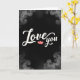 This card shows a deep black background with the words “Love you” in flowing white lettering across the center. Between the two words, there are two small pink hearts that add a gentle, romantic touch ❤️. Soft, smoky grey swirls curl in from the edges, forming a misty border around the message. The white letters stand out strongly against the dark backdrop, making the words easy to notice right away. The hearts feel like a quiet reminder of closeness, whether you’re giving it to a partner or someone you care about deeply 🥰. The grey haze around the edges adds a calm, dreamy mood without taking attention away from the message. It feels meaningful because it says exactly what you want to say, simply and honestly. Share it to pass along a little Valentine’s Day love and kindness.