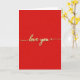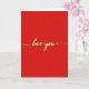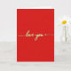 This greeting card shows a deep ruby red background filled with tiny gold specks that look like scattered glitter. In the center, the words “love you” stand out in shiny gold cursive writing, with smooth, flowing strokes. The message sits right across the middle, making it the first thing you notice. A thin gold line runs with the words and stretches out to the right side of the card. At the far right end of that line, there’s a small gold “x,” like a kiss to finish the note 😘. The red and gold color mix feels romantic and festive without being too much 💘. It’s a simple way to say what you feel and share Valentine’s Day with someone you care about ❤️.