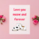 Send purr-fectly sweet wishes with this adorable greeting card! Featuring a cute cat design on a pink background with the loving message, "Love You Meow and Forever," this card is ideal for Valentine’s Day, anniversaries, or just to say ‘I love you!’