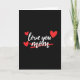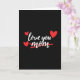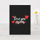 This card features a deep black background with the words “love you mom” in white cursive lettering across the center. The letters look like they were written with a smooth brush, giving the message a gentle, written-by-hand feel. Around the words are bright red hearts: two small ones sit above and to the left of “love,” and a larger heart rests near the upper right above “you.” A red underline sits just under “mom,” slightly uneven like a quick mark made with care. The strong contrast of white and red on black keeps your eyes on the message right away. It feels like a simple, honest way to tell your mom you care, whether it’s for romance-style warmth or close family love 🥰. The little hearts add a soft, affectionate touch without needing anything else ❤️.