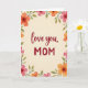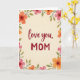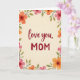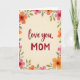 This card centers on the words “love you, MOM” in deep red, with “love you” in a smooth, flowing letter style and “MOM” in strong, all-caps letters right beside it. The message sits in the middle of the front, so your eyes go straight to it first. Around the text is a border of watercolor-style flowers and small leaves that feels soft and caring. The blossoms mix coral, tangerine, fuchsia, and blush pink, with petals that fade gently into one another like real paint. Deep green leaves and thin, darker stems weave between the flowers to frame the message without taking it over. The background is a creamy, parchment-like off-white that keeps everything warm and easy to read. It feels meaningful to give because the simple words and gentle florals say “I care about you” in a way that fits both love and close friendship 🥰❤️.