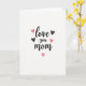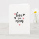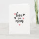 This love card shows the words “love you mom” in smooth, flowing black lettering centered on a bright white background. Around the message, several hearts are scattered like a frame, mixing coral pink hearts with black hearts. The pink hearts have a lightly speckled texture, and the black hearts look softly textured too, which adds a cozy, tactile feel. Inside the word “you,” two tiny pink heart dots sit like little accents, drawing your eye back to the message. The wide white space keeps everything calm and easy to read, so the words feel honest and direct. It feels meaningful because it says what many people want to tell their mom, without needing a long note 🥰. The simple color mix of black and warm pink makes it feel loving and steady ❤️.