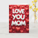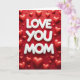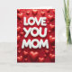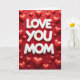 On the front of the card is a deep red background with glossy red hearts scattered around in different sizes. In the center, the message “LOVE YOU MOM” stands out in puffy white letters that look soft and rounded. The letters have gentle shadows underneath, so they feel raised and almost like foam. The hearts shine with small light reflections, giving the design a sweet, caring look. The words are all caps and easy to read, with the white text popping clearly against the red. It feels meaningful to give because it says exactly what you might not always say out loud, in a simple and loving way 🥰. It’s a warm reminder that love and gratitude can be shown with just a few honest words ❤️, perfect for sharing Valentine’s Day.