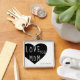 Stylish keychain for a great gift with personalized script in elegant font inside a heart illustration. Script "love you mom" can be changed with name or title that you prefer for a personalized gift along with monogram