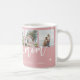 Trendy pink 5 photo collage, heart and your signature we love you mom handwriting script typography Mother's Day personalized pink coffee mug. Perfect keepsake gift for mom, grandma, sister, or mother in law.