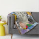 A quality printed throw has its advantages. This is a much finer weave throw than its loopier cousins, and though lighter, it is worth the investment for custom room accessorizing. The back is much prettier than the typical brown, and the fringe on the long sides very vivid, the selvage nicely done. Before photographing, I washed the throw in cold water, delicate, with a thicker woven throw the same size. On tumble dry low, this throw was dry in half the time as the other. This is a very practical quality if you use throws for furniture covers or to wrap up in frequently. The sleekness of the fabric makes it a great layer for accenting or protecting without the feeling of sitting on too much stuff. Perfect for napping or when you feel a light chill coming on. The color printing is beautiful and on this fabric, matched the design and color of my Photoshop image. This is an advantage for blending room fabrics and colors. The fringe on the short sides prints the colors from the design image and therefore varies from the side fringe. I streaked a white fractal line through the plaid pattern to give the illusion of weaving. This printed as crisp as an illusory thread, and put some white in the short side fringe, showing another advantage of print vs loomed- for artistic purposes, line lines, detail, and color integrity can be planned and preserved. My loomed throws have color limitations and more of a needlepoint texture. Print throws reproduce an exact image. The throw felt a little stiff straight out of the package, but this went away in the first delicate wash. Of course I searched the wash water for ink or bleeding and there was none.