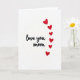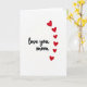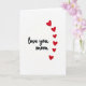 This greeting card features a simple white background with the words “love you mom” written in black, flowing cursive on the left side. The lettering looks like smooth pen strokes, slightly textured, and it feels close and sincere. Along the right edge, six small red hearts curve downward in a neat line, like a gentle trail. The hearts look like thick paper or felt, and each one casts a soft shadow that adds a little depth. With all that open white space, your eyes go straight to the message and the hearts, and it feels calm and focused. It’s a sweet way to say thank you and “I care about you,” whether it’s for your mom or someone who’s been like one to you 🥰. The red hearts bring in warmth and love without needing anything else ❤️. Hope it helps you share a little Valentine’s Day feeling with someone you love.