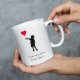 Surprise your mom with this modern and stylish coffee mug! Featuring a silhouette of a boy holding a red heart balloon, it's a heartfelt way to say "I love you, mom." Personalize it by adding your name for a personalized touch. Perfect for minimalistic moms who appreciate thoughtful gestures.