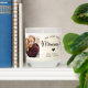 Simple and sweet two photo custom candle for Grandma: The hand lettered script reads WE LOVE YOU MOMMY with pretty hearts flourishes over your names. Personalize with your two favorite photos and make this a modern, trendy keepsake gift for a beloved grandmother.