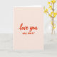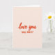 This greeting card features a soft peach-blush background with plenty of open space that keeps the focus on the message. In the center, the text reads “love you THE MOST,” and it’s the main thing you notice right away. “love you” is written in a hand-lettered cursive style that looks like brush script, giving it a warm, personal feel. Right below it, “THE MOST” appears in uppercase block letters in a simple sans-serif font, making the message feel steady and sure. All the lettering is in a deep orange-red color that stands out clearly against the gentle background. The overall look is calm, sweet, and romantic, like a straightforward note you’d give to someone you care about ❤️💌🍫. Hope it helps you share your Valentine’s Day feelings in a kind, heartfelt way.