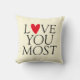 "Love you most" Personalized red heart Throw Pillow