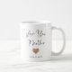 This simple and stylish mug says "Love you Mother" in trendy, handwritten black script with a faux rose gold look heart and a spot for her child's name.