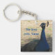 "We love you, Nana" is the sentiment on this inexpensive keychain. Peacocks are magnificently beautiful birds that have a very distinctive call if you are luck enough to hear it. This photo captures the beauty of the male peacock who is standing proud and displaying his brilliant blue colors. The brown earth-tones allow the stunning bright blue color to pop off this keychain. The text can easily be personalized to your needs.