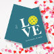 Trendy elegant pickleball flat card featuring stacked letters spelling "LOVE" with a pickleball ball in place of the O on a richly colored background. Personal message - placeholder can be customized for individual for group recipient or replaced with your own sentiment. Available in a curated selection of energetic colors. Also available in folded card versions and without photo - please check the store. Perfect for Valentine's Day, Sweetest Day, wedding anniversary, or any day!
