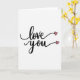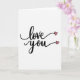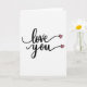 This card features the words “love you” in flowing black handwriting across a bright white background. The letters are smooth and slightly thick in some places, like they were written with a pen, and they sit centered on the front. Two small pink hearts are tucked into the design near the ends of the strokes, adding a sweet touch 💘. There are no other pictures or patterns, so your eyes go straight to the message. The black text stands out clearly against the white space, making it easy to read at a glance. The little hearts bring in a gentle pop of color and make the note feel more romantic ❤️. It’s a simple way to say you care, whether it’s for a partner, a close friend, or someone you miss 😘
