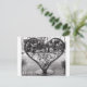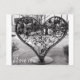Black and white picture of wrought iron heart shaped sculpture and a matching message of love.