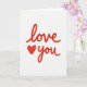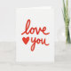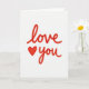 This card features the simple message “love ♥ you” written in red across two lines, right in the center. The word “love” sits on the top line, and “you” is just below it, with a small heart between them. The letters look like they were written by hand with a crayon or colored pencil, so you can see light and dark spots in the strokes. The lines are a little uneven in a sweet, natural way, like a quick note to someone you care about. The background is plain white with lots of open space, which makes the red words stand out even more. There aren’t any characters or extra objects—just a clear, loving message that feels close and direct 💘❤️. It’s a simple way to say what you mean without overthinking it. Hope it helps you share some love with someone special this Valentine’s Day 😘.