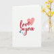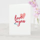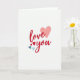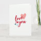This Valentine's Day card features the words “love you” large in the center in smooth, flowing red lettering on a plain white background. A big soft pink heart sits slightly tilted and overlaps part of the word “love,” giving it a sweet, shy feel. Near the lower right, there’s a small group of tiny hearts scattered together in red, teal, and light blue. Each heart has a light shadow underneath, so the shapes look gently raised instead of flat. The simple layout keeps your focus on the message and the hearts, making it feel direct and loving 💘. The mix of colors adds a friendly touch that works for romance or close friendship ❤️. Share it with someone special and let them know you’re thinking of them this Valentine’s Day 😘.