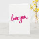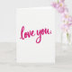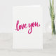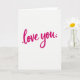 This card shows the words “love you.” written in deep fuchsia pink across the center of a white, lightly textured background. The letters look like smooth, connected handwriting, with soft curves that make it feel like a quick note from someone you care about. There’s a small period at the end that makes the message feel sure and complete. With so much open white space around the words, your eyes go straight to the message and it feels calm and honest. The simple look keeps the focus on affection, whether you’re giving it to a partner, a close friend, or someone you miss. It’s meaningful because it says a lot with just two words, leaving room for the person reading it to feel your care 🥰. Share it with someone special and let your Valentine’s Day feelings come through in a sweet, direct way ❤️.